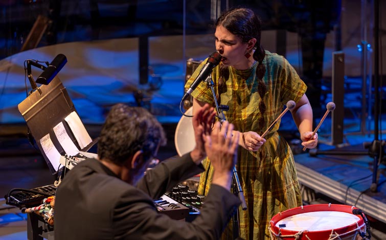 Ana Lua Caiano traz a música tradicional para o universo da eletrónica, servindo-se de sons do quotidiano, harmonias e cânones, sintetizadores e beat machines. Compõe, toca, canta e produz. Uma verdadeira one-woman band e uma referência artística para as novas gerações. Mas agora o desafio é diferente: como se comportará a sua música no contexto de um grande ensemble? Sendo o jazz particularmente propenso à união de linguagens, e estando a falar da Orquestra Jazz de Matosinhos, não parece difícil antecipar o êxito deste encontro. Depois da estreia em abril de 2025, na Casa da Música do Porto, este espetáculo volta a ser apresentado no Novo Ciclo ACERT.