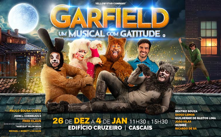 Elenco: Beatriz Souza (Arlene), Guilherme de Bastos Lima (Jon Arbuckle), João Vilas (Odie), Quimbé (Garfield) e Ricardo de Sá (Nermal)