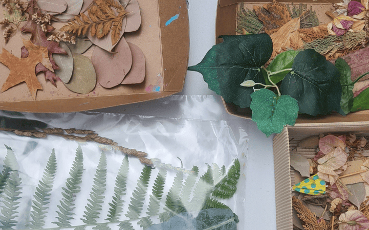 trazer elementos da natureza (como folhas ou flores secas) para utilização nas