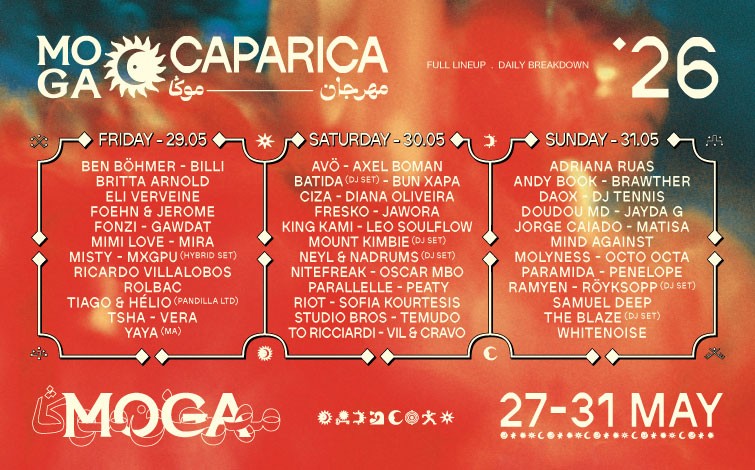 Realizado numa praia a 20 minutos de Lisboa, o MOGA combina uma programação cuidadosamente selecionada com talentos internacionais, experiências imersivas e uma atmosfera voltada para a comunidade. Inspirado pelas suas raízes marroquinas e pela energia da costa atlântica, o festival cria uma experiência de vários dias que vai para além da música.