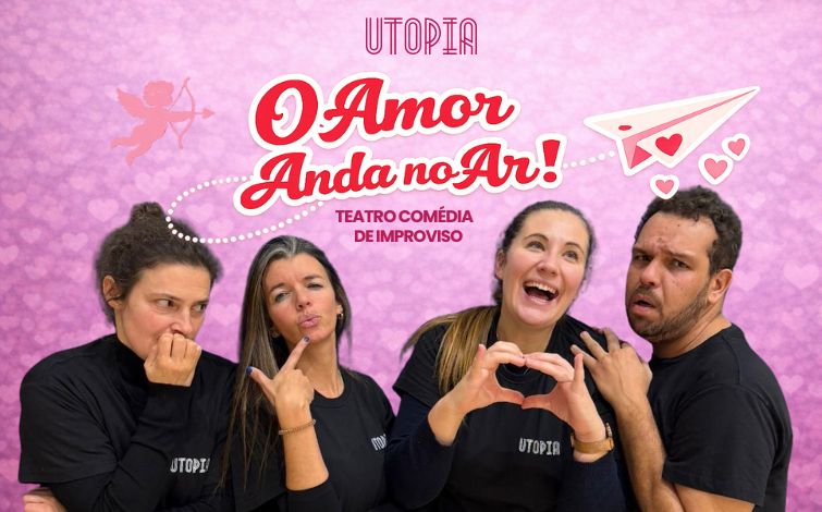 O Amor Anda no Ar! é um espetáculo de comédia de improviso onde as histórias de amor do público sobem ao palco sem filtros, sem edição e, sobretudo, sem piedade. Porque nada diz “amo-te” como ver a vossa relação transformada em cenas inesperadas, exageradas e dolorosamente verdadeiras - mas muito engraçadas. Cada espetáculo é único, irrepetível e ligeiramente fora de controlo. É esta imprevisibilidade, onde o riso, a emoção e o “isto é demasiado parecido connosco” que torna a experiência imperdível.
