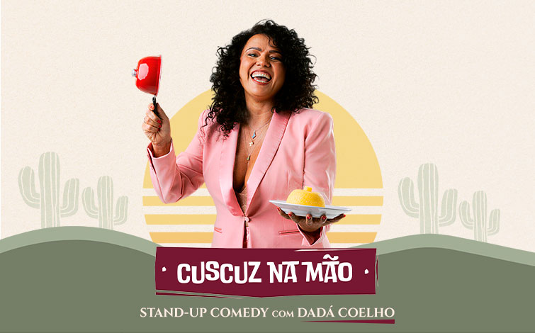 Dadá Coelho, uma das mais aplaudidas comediantes brasileiras, descobriu os ingredientes necessários para fazer rir plateias e volta a Portugal, em maio, com espetáculo irreverente e cheio de sabor. Em Cuscuz na Mão, Dadá sobe ao palco com uma panela ao lume e um microfone de lapela, apenas. Com o humor mais afiado do que a faca, no palco, enquanto a água ao lume, é a plateia que ferve.